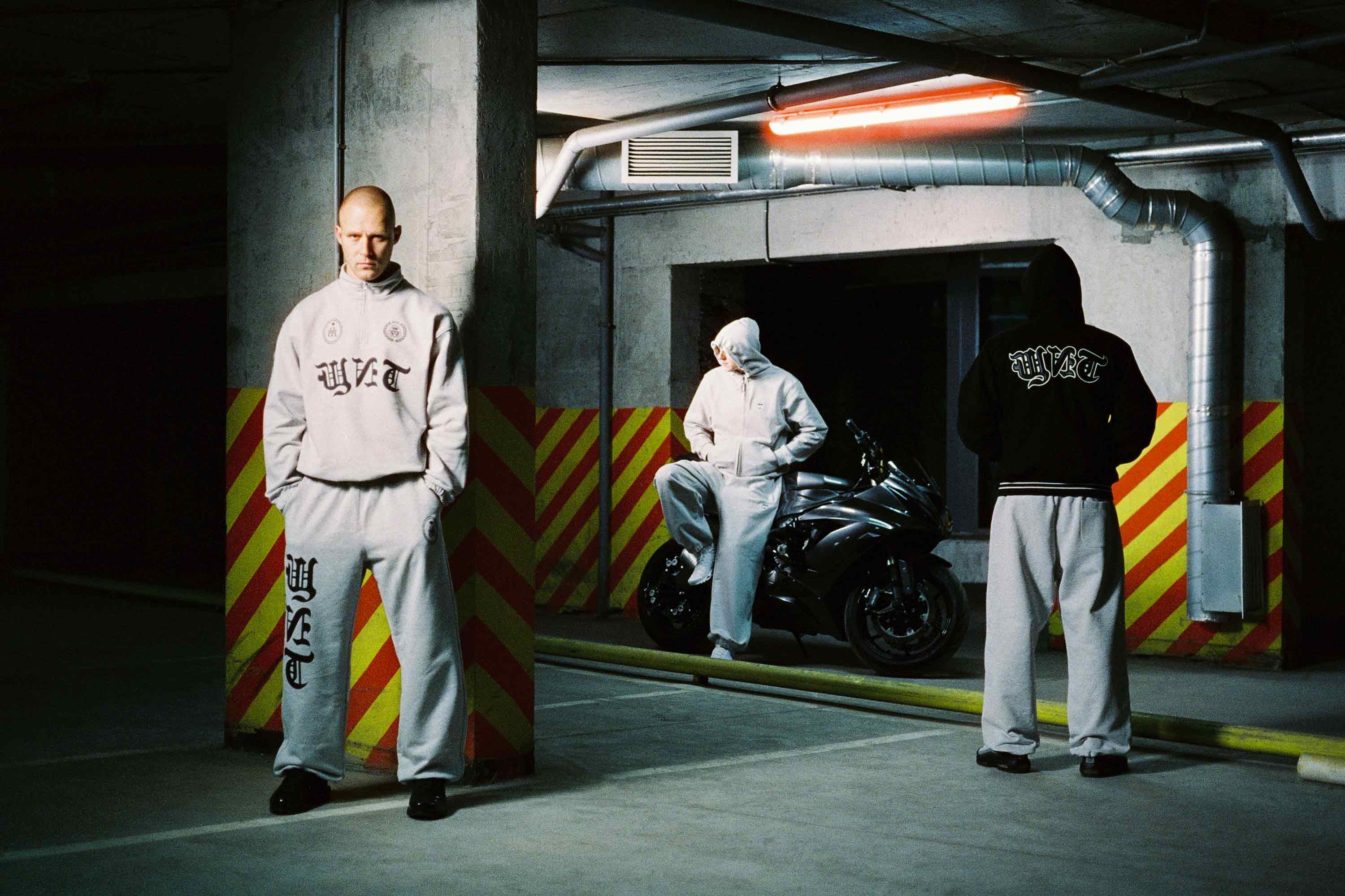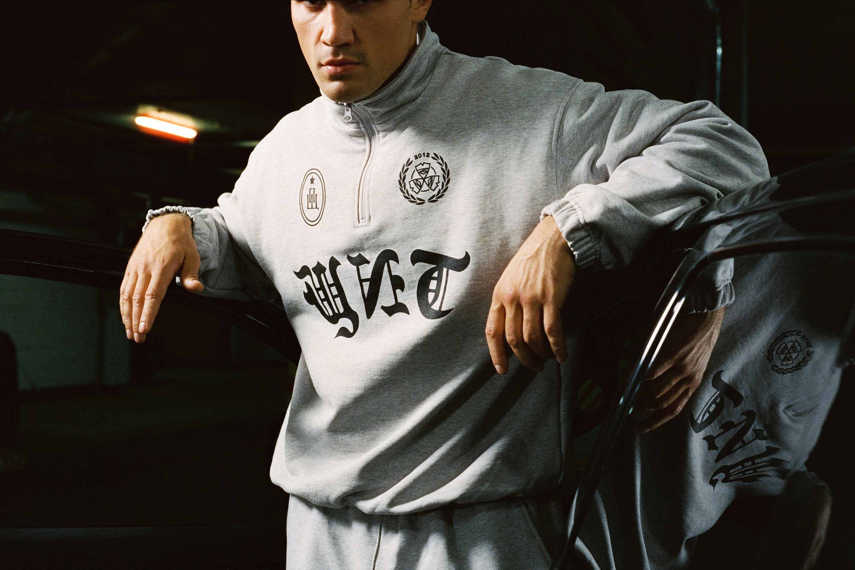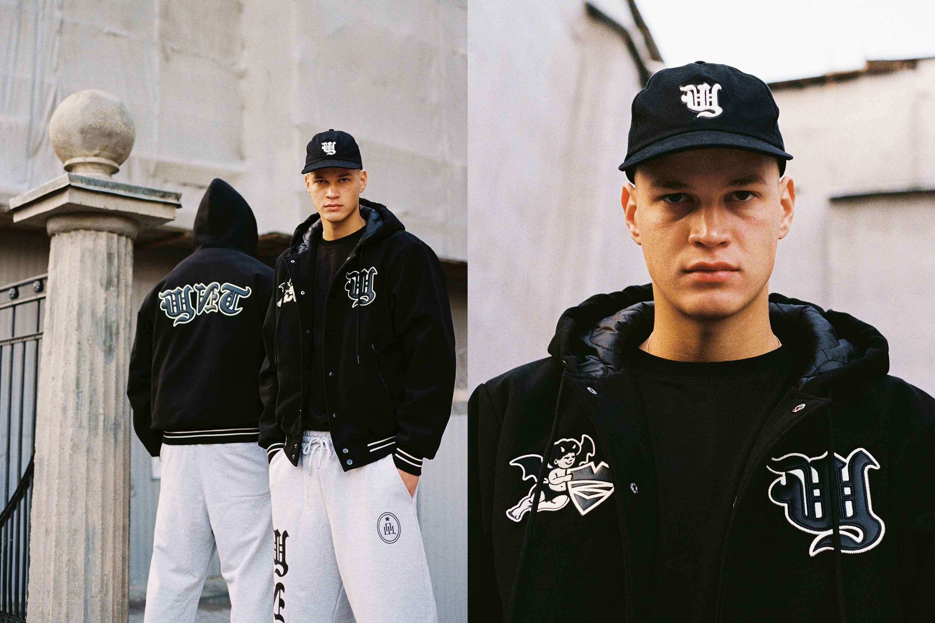 В коллекцию вошло 11 трикотажных изделий: классические толстовки, зип-худи и олимпийка, спортивные брюки и футболки. Флагманским изделием стал бомбер с капюшоном из искусственной шерсти, декорированный нашивками из вышивки, комбинированной с эко-кожей.