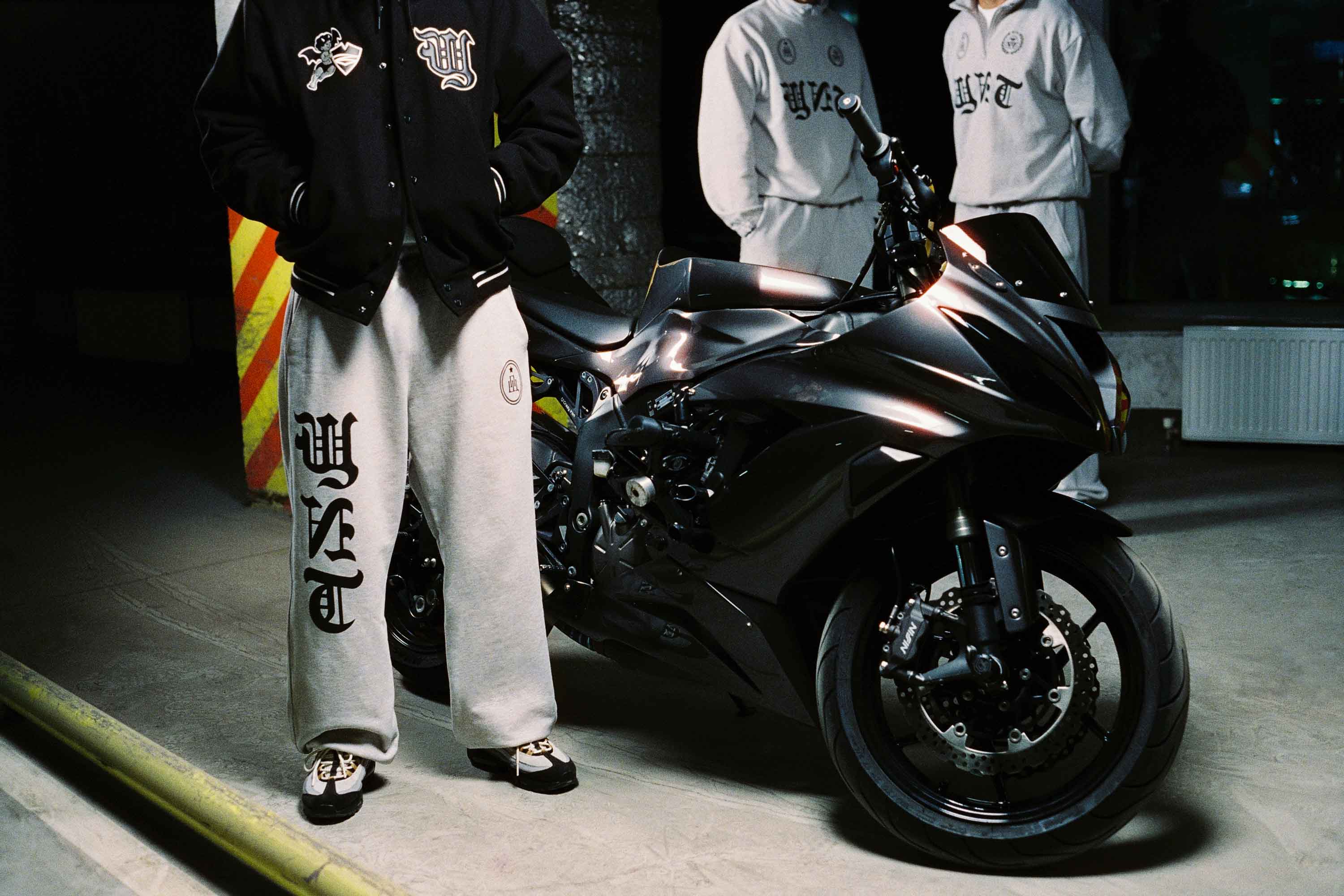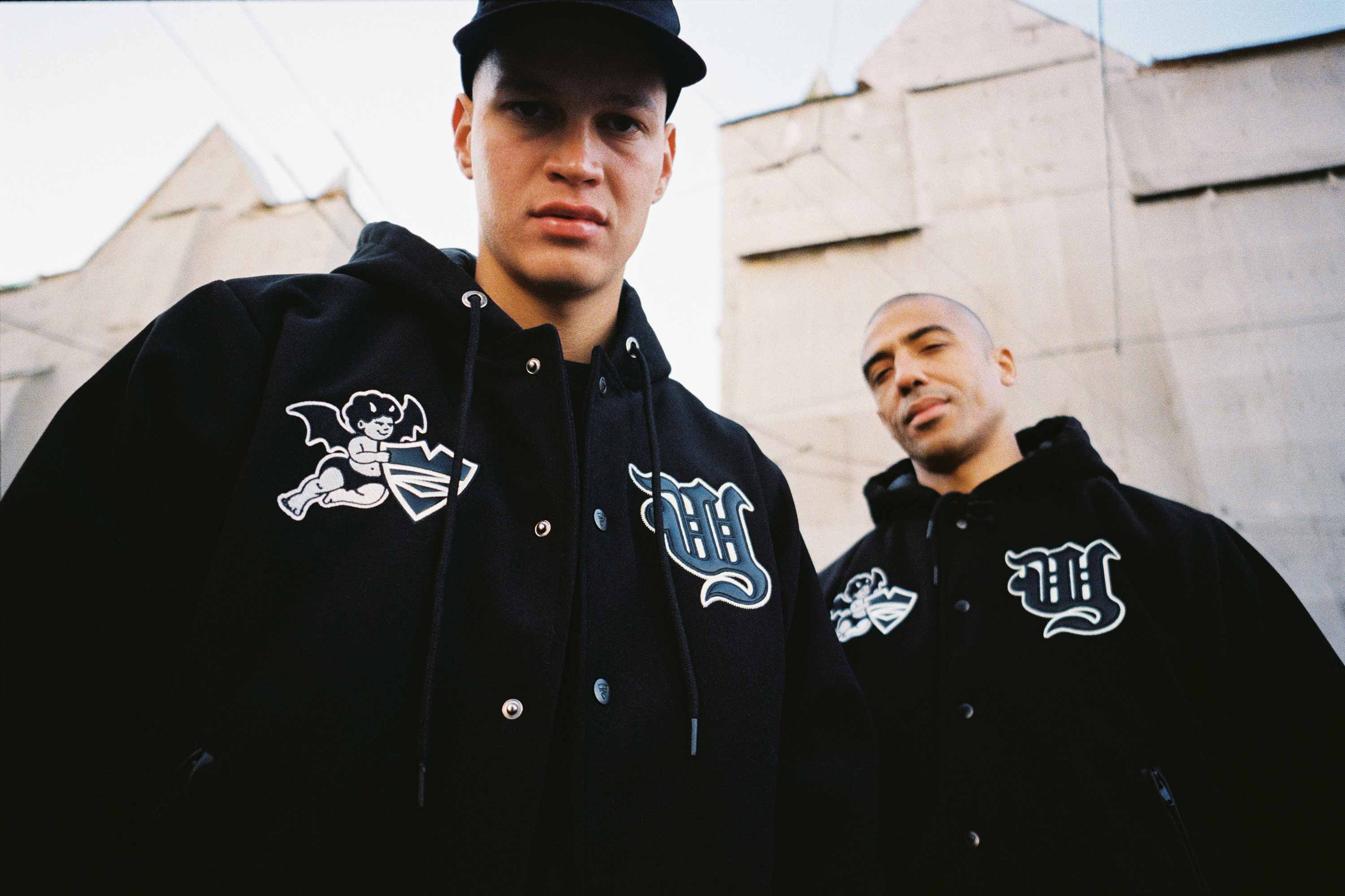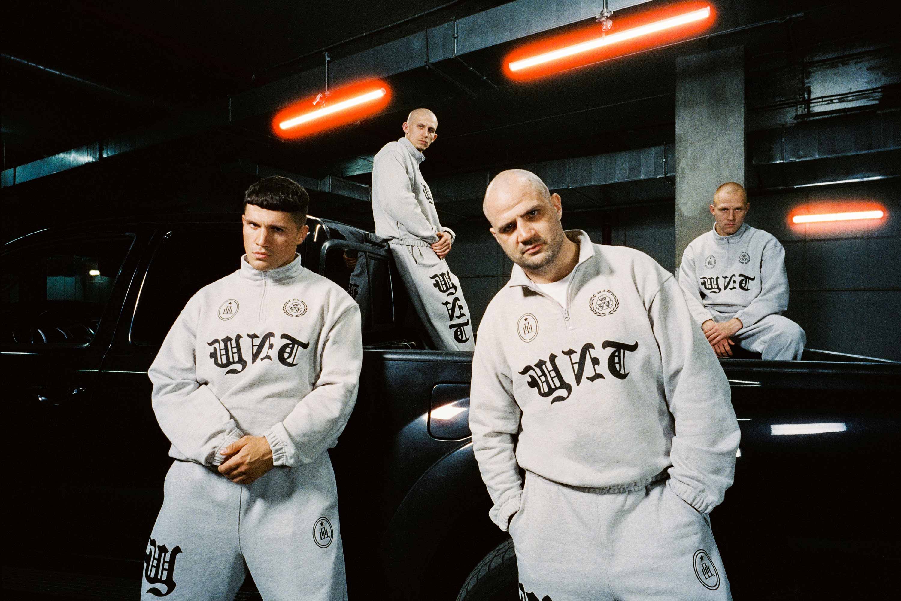 В коллекцию вошло 11 трикотажных изделий: классические толстовки, зип-худи и олимпийка, спортивные брюки и футболки. Флагманским изделием стал бомбер с капюшоном из искусственной шерсти, декорированный нашивками из вышивки, комбинированной с эко-кожей.