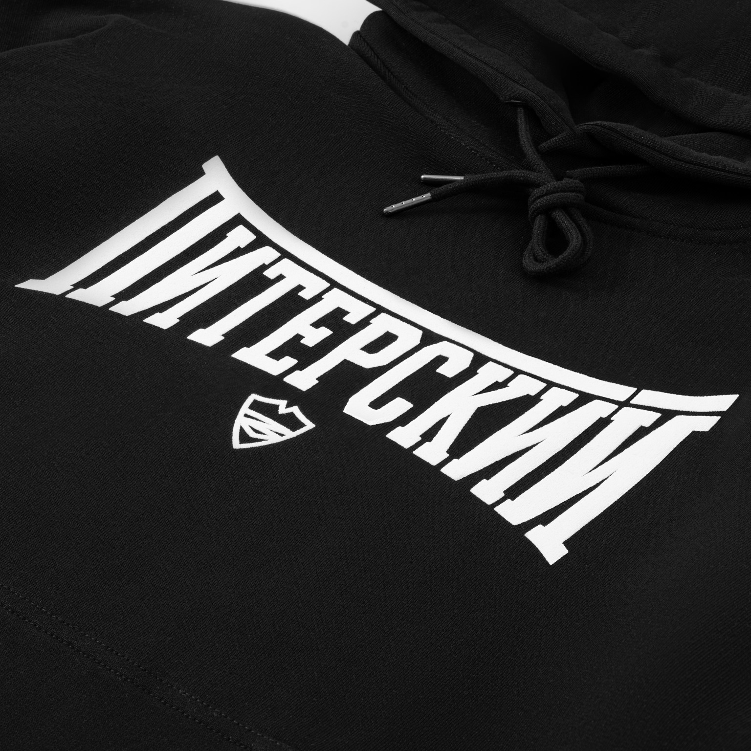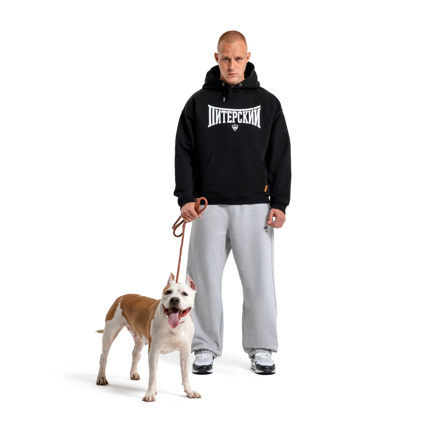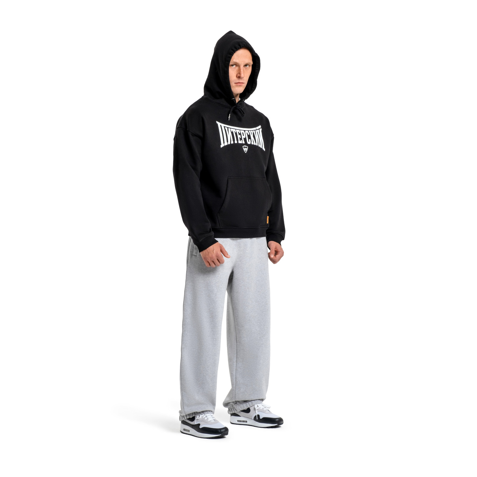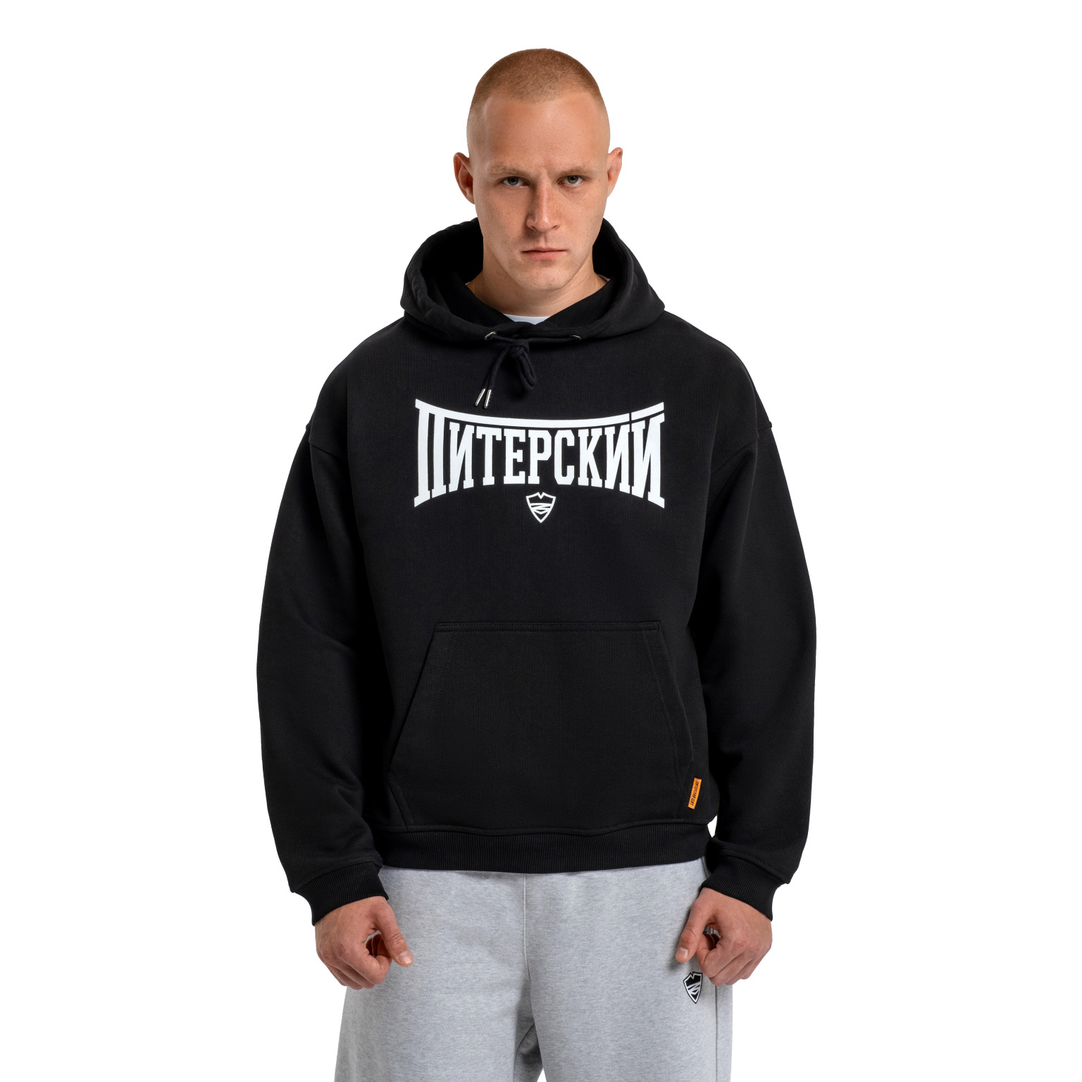 Толстовка оверсайз кроя выполнена из плотного футера без начеса.