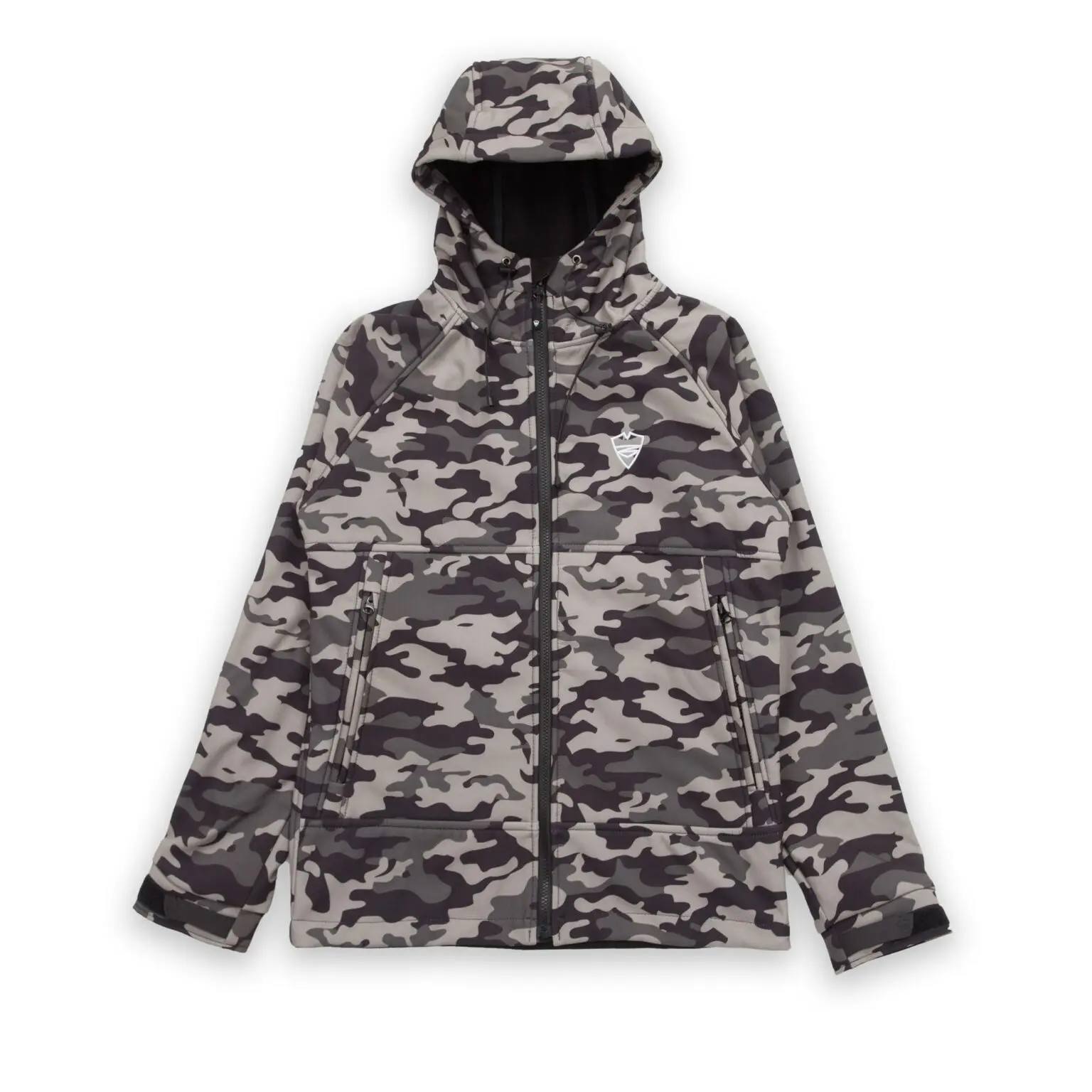 Весенняя куртка в цвете камуфляж. В куртке использован материал Softshell. Softshell отличается от традиционной малым весом, небольшими объемами, и при этом максимально сохраняет тепло и надежно защищает от дождя и ветра. Два кармана снаружи и один внутренний. Фурнитура YKK.