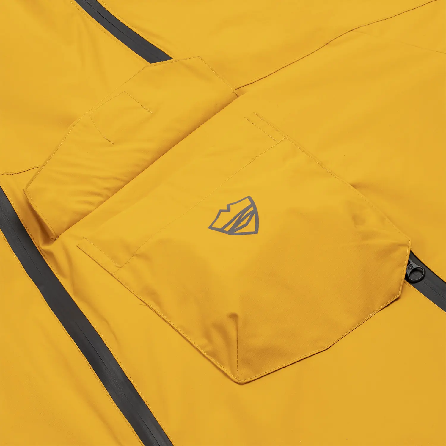 Ветровка ассиметричного кроя изготовлена из мембраны с рипстоп плетением. Благодаря этому материалу она имеет малый вес, но при этом защищает от ветра и дождя. За дополнительный комфорт отвечают рижские прорезиненные молнии Arta F, капюшон с козырьком и высокой стойкой. Капюшон оснащен системой регулировки объема, а ширина ворота регулируется дополнительной молнией. На груди расположен функциональный карман с магнитным клапаном. На нем находится светоотражающий логотип бренда. Куртка создана в Санкт-Петербурге.