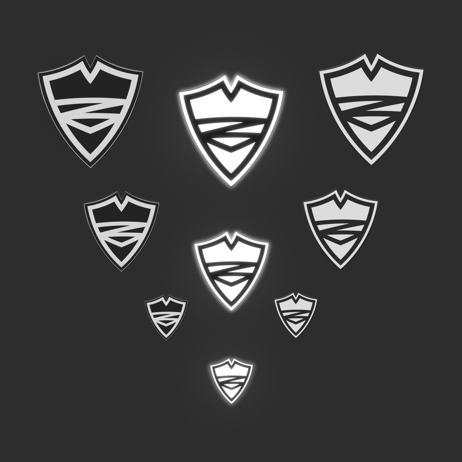 Набор из 9-ти наклеек в виде классических логотипов: чёрного, белого и светоотражающего.
