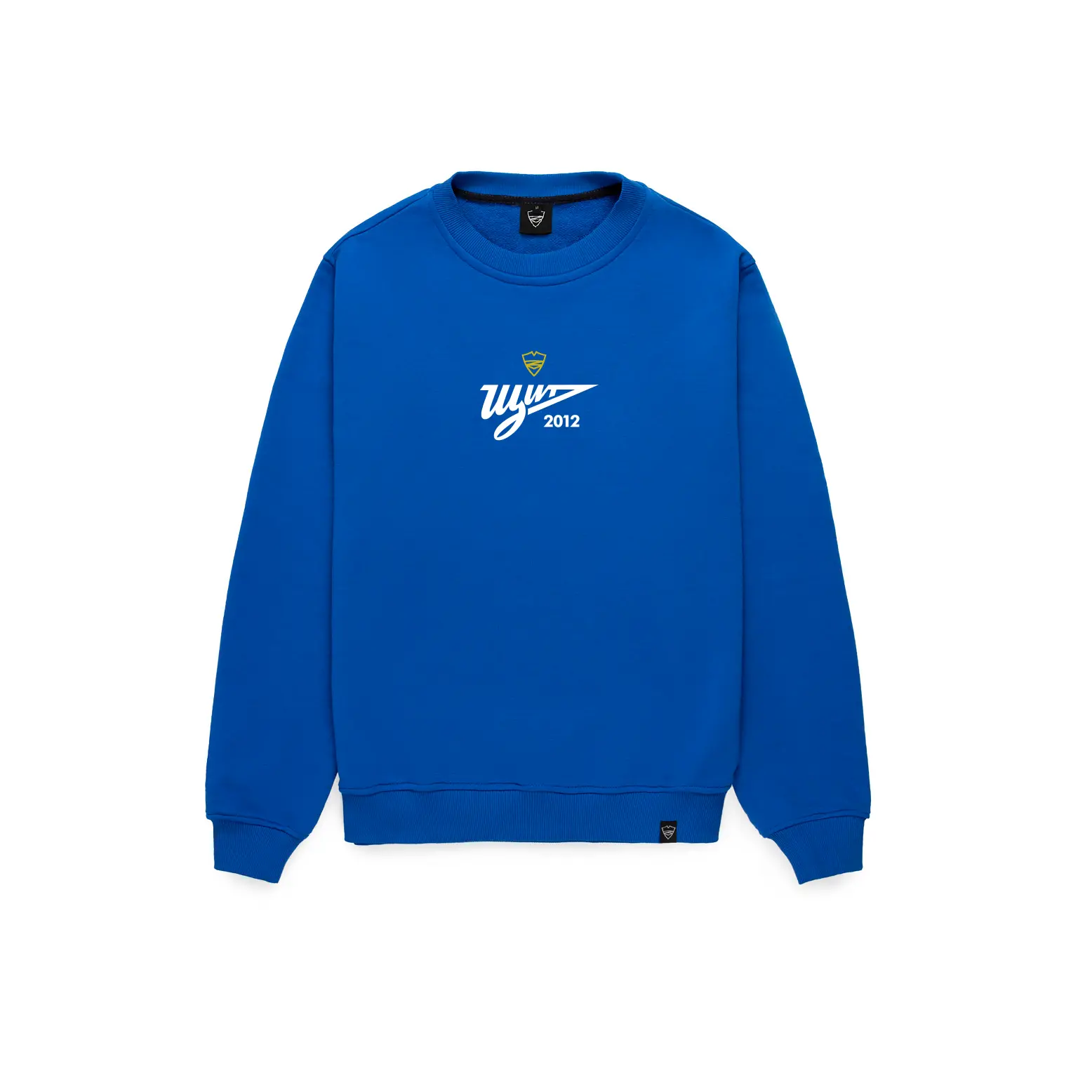 Свитшот свободного кроя выполнен из 100% хлопка.